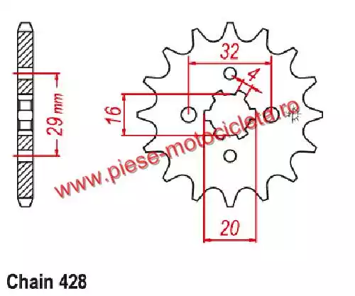 - Specificații tehnice: 15 dinți, tip 428