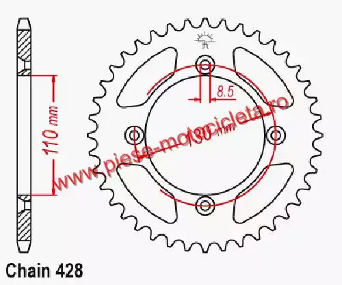 Pinion Spate Honda CR80 RG - 49 Dinti, Tip 428
